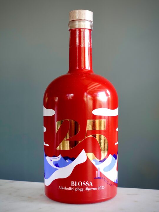 Blossa Alperna 2025 är årets smak på glöggen, här alkoholfri. Glühwein, enbär, citron och pomerans. Så smakar bergen tydligen. Vi värmer upp en karott och smakar!
